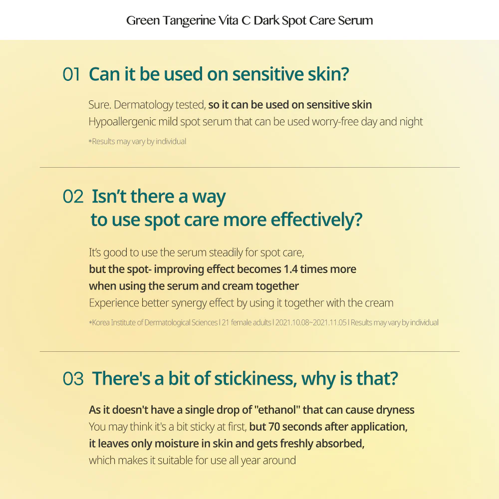 - این سرم حاوی عصاره نارنگی سبز (Green Tangerine) است که به طور طبیعی غنی از ویتامین C میباشد. ویتامین C به عنوان یک آنتی اکسیدان قوی عمل کرده و به روشن شدن پوست و کاهش لکه های تیره کمک میکند.