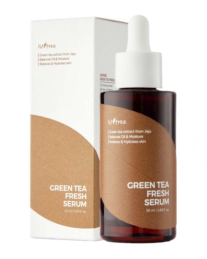 سرم Isntree حاوی عصاره چای سبز از جزیره ججو است که به تنظیم چربی و رطوبت پوست کمک میکند. این محصول برای افرادی که پوست مختلط تا چرب دارند ایدهآل است و از براق شدن بیش از حد پوست جلوگیری میکند.