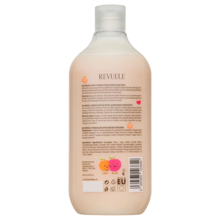 Water / Aqua, Sodium Laureth Sulfate, Cocamidopropyl Betaine, Cocamide DEA, Sodium Chloride, Styrene/Acrylates Copolymer (and) Coco-Glucoside, Phenoxyethanol, Fragrance / Parfum, Disodium EDTA, Apricot Fruit Extract / Prunus Armeniaca Fruit Extract, Peach Fruit Extract / Prunus Persica Fruit Extract, Citric Acid, Sodium Benzoate, Potassium Sorbate, Acid Red 33 / CI 17200, Tartrazine / CI 19140, Linalool.