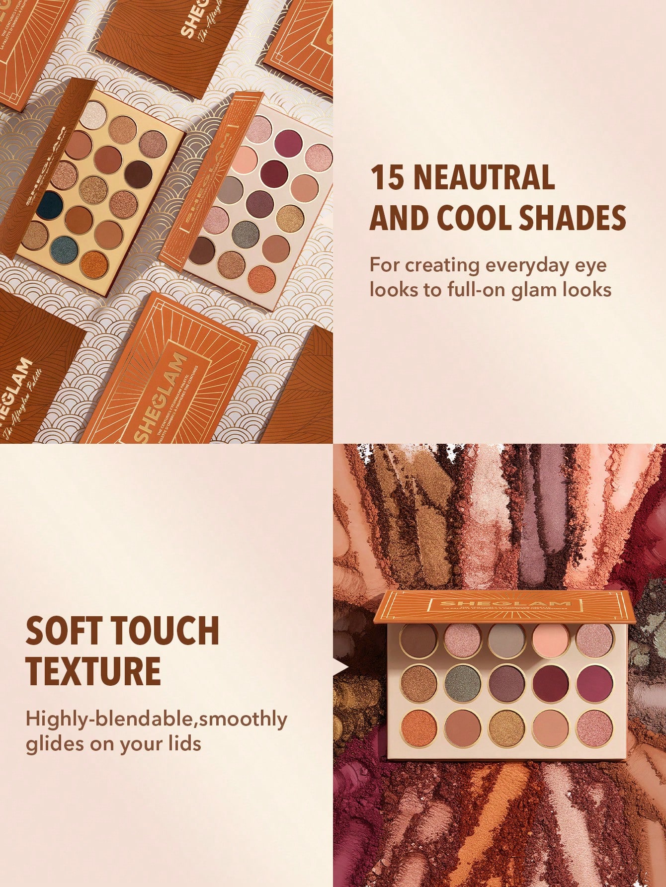 سایه های این پالت دارای بافتی نرم و ابریشمی هستند که به راحتی روی پوست پخش میشوند و رنگ دهی بالایی دارند.