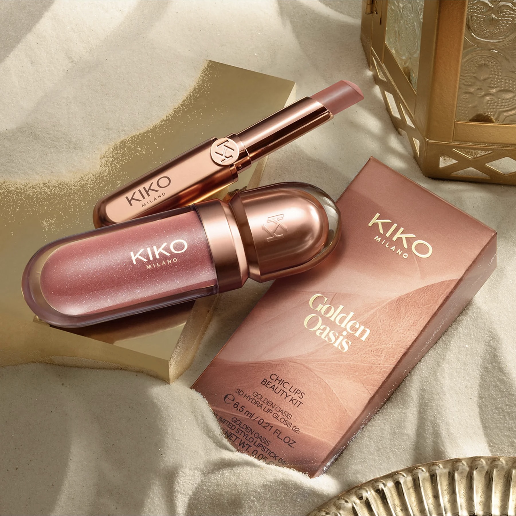 ✨ KIKO Milano Golden Oasis Chic Lips Beauty Kit ترکیبی ایدهآل برای داشتن لبهایی زیبا، براق و لطیف در هر موقعیتی! 💖💄