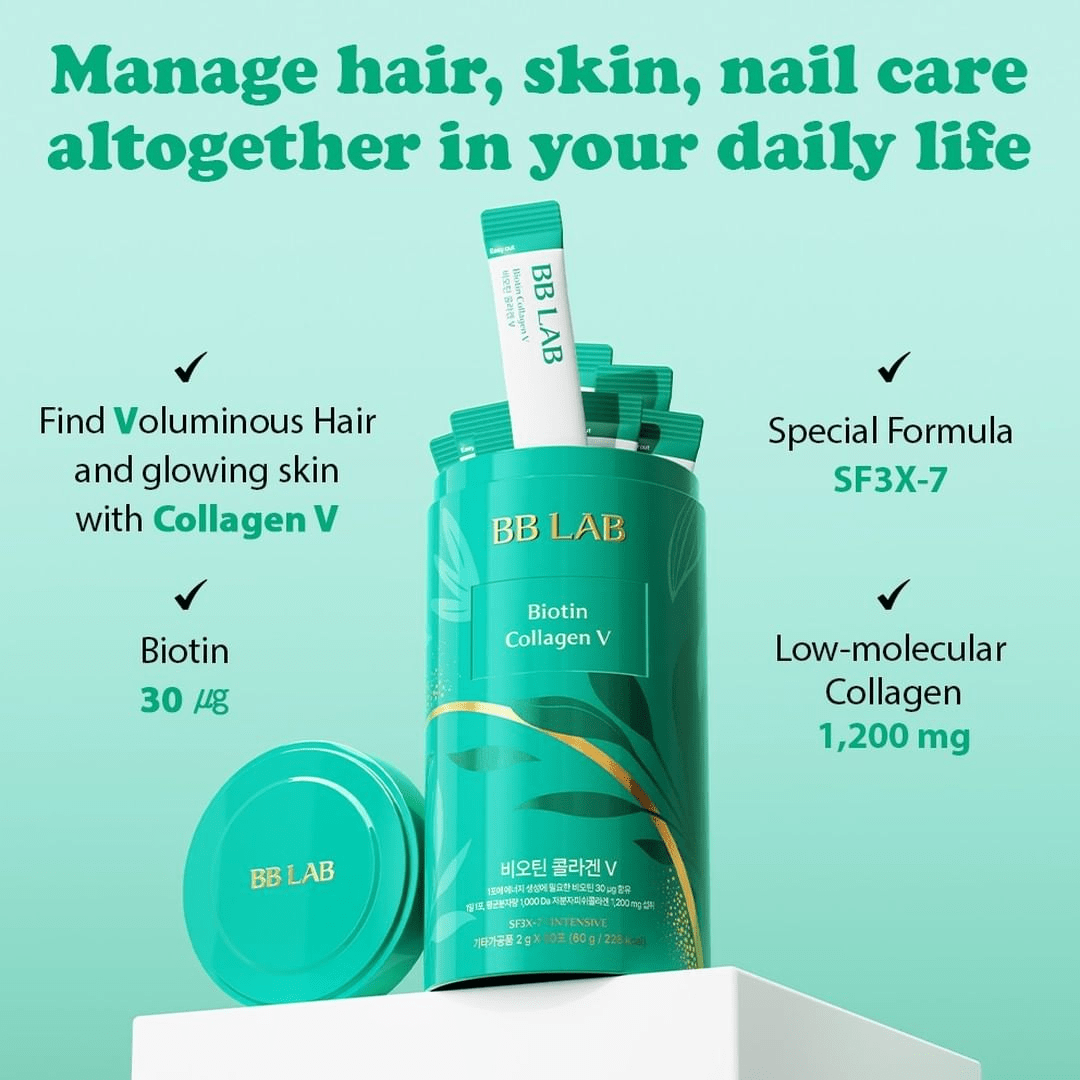مکمل خوراکی BB Lab Biotin Collagen V (ساشهای) ترکیبی از بیوتین و کلاژن است که به حفظ سلامت پوست، مو و ناخنها کمک میکند. هر ساشه با فرمول تخصصی خود باعث تقویت مو، افزایش استحکام ناخنها و حفظ شادابی و انعطاف پوست میشود. مصرف روزانه این مکمل ساشهای راحت، سریع و مناسب برای روتین سلامت و زیبایی است ✨💧.