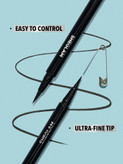 - این خط چشم دارای رنگ مشکی عمیق با پوشش مات است که به چشم ها ظاهری تیز و خیره کننده میبخشد. این ویژگی باعث میشود که بتوانید به راحتی خطوط دقیق و تمیز روی پلک ها ایجاد کنید.